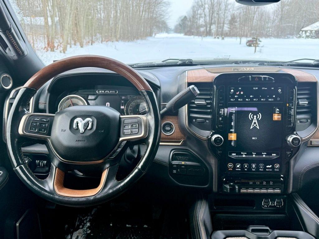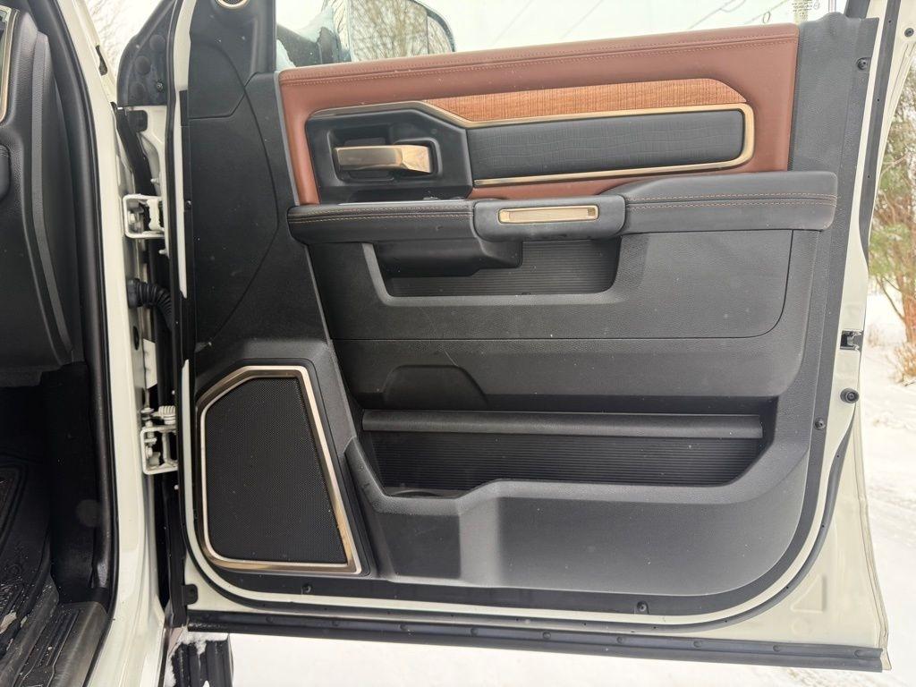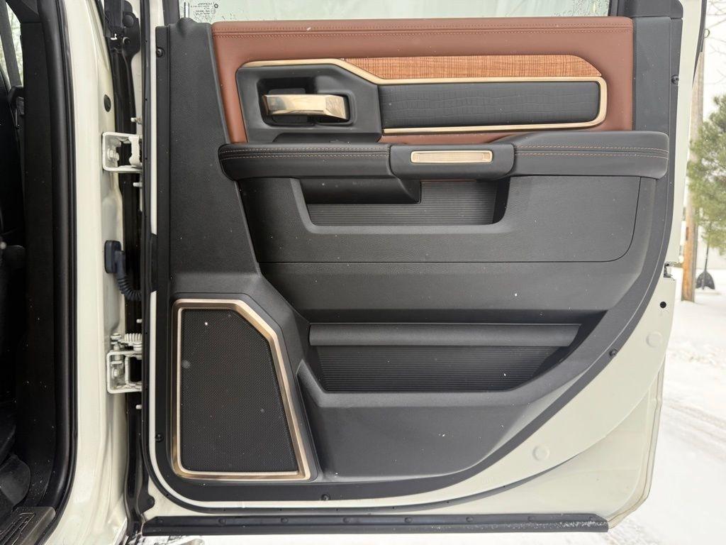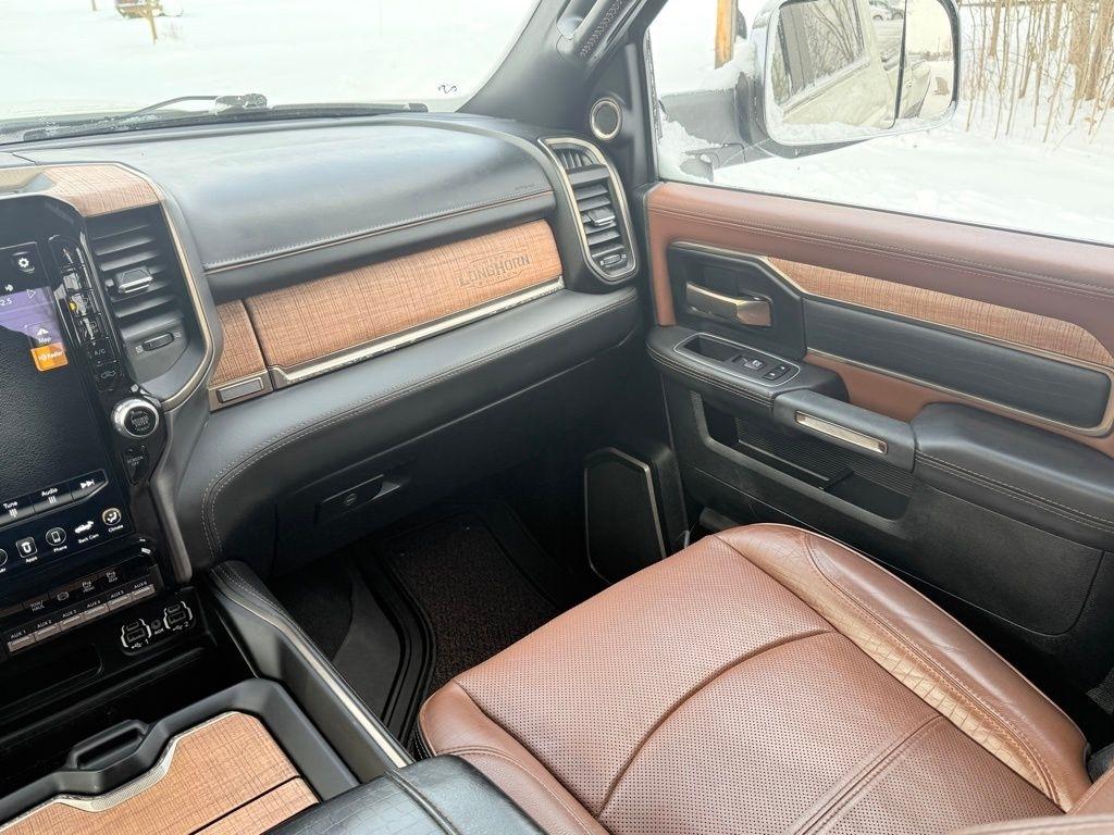 The attention to detail is evident in every aspect of this Laramie Longhorn. Luxurious leather seating, genuine wood accents, and a premium 17-speaker harman kardon sound system create an unparalleled driving experience. The advanced technology features, including the Uconnect 12.0 infotainment system with navigation, Surround View Camera, and Ramcharger Wireless Charging, seamlessly integrate to keep you connected and in control.
