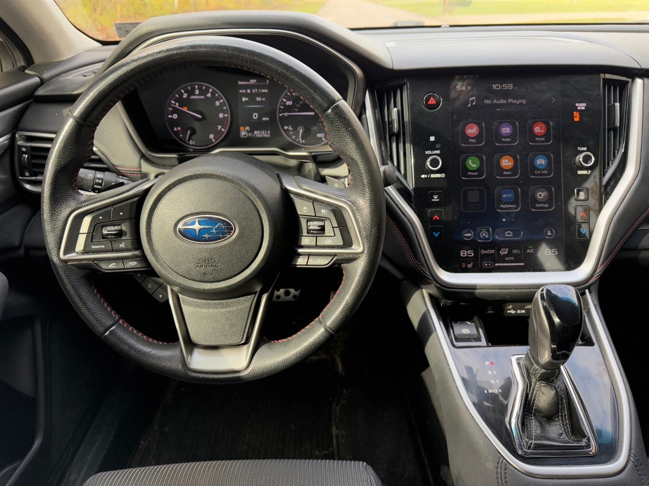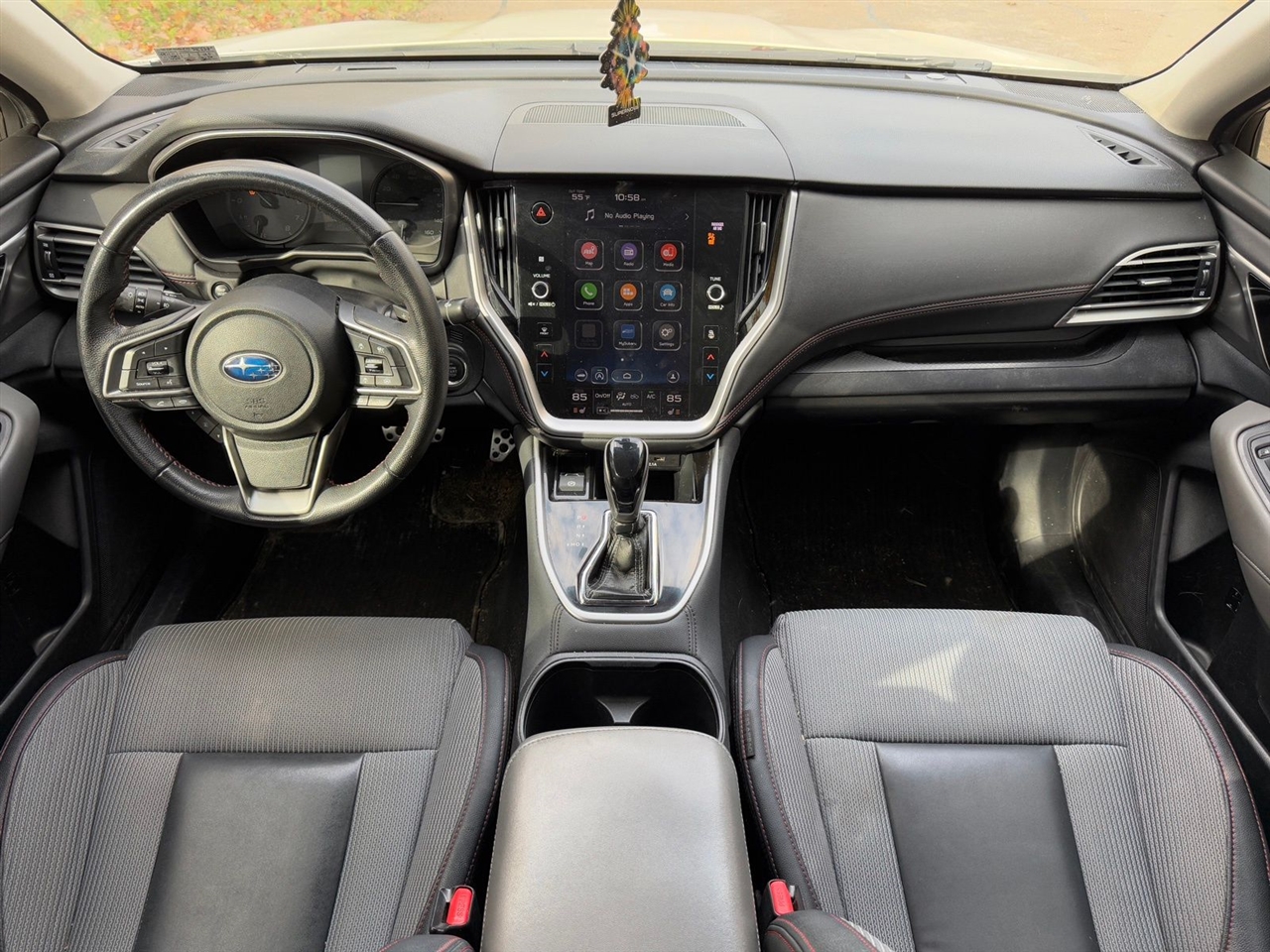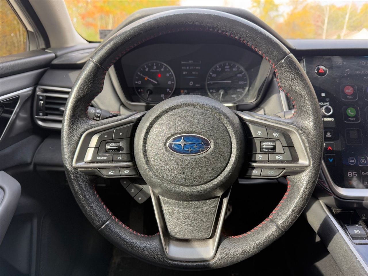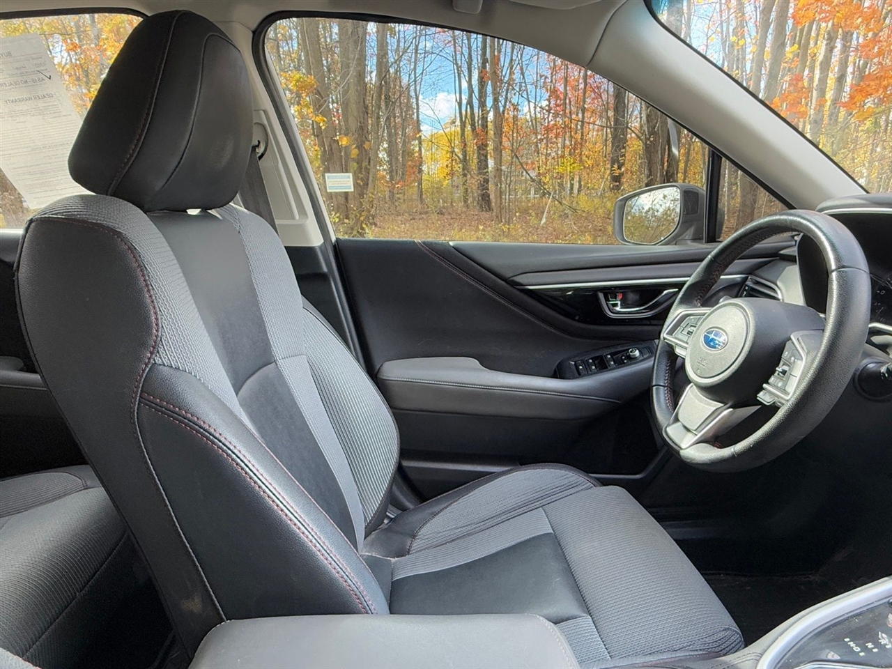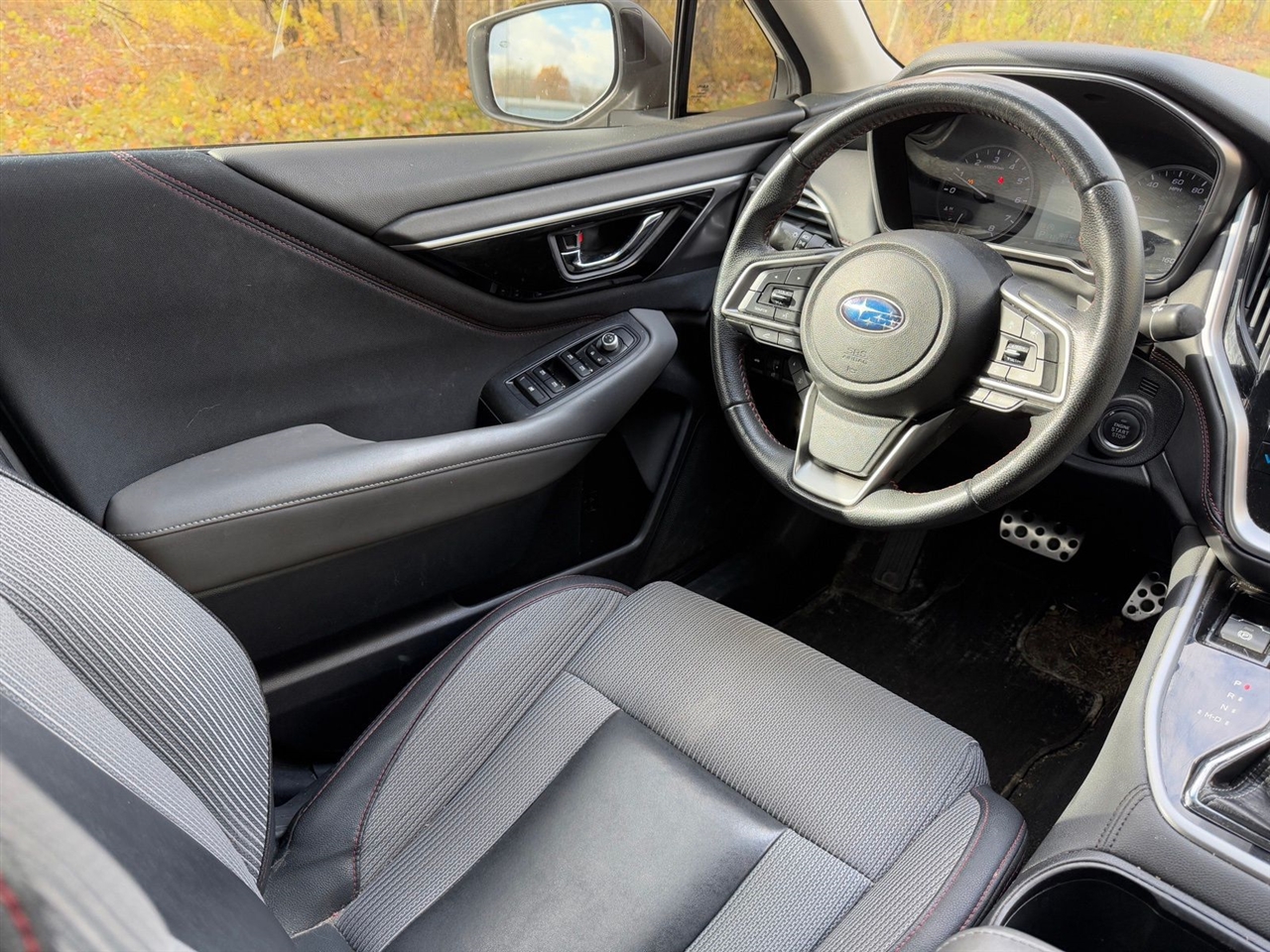 4-Wheel Disc Brakes, 6 Speakers, ABS brakes, Air Conditioning, All-Weather Floor Liners, Alloy wheels, AM/FM radio: SiriusXM, Auto High-beam Headlights, Auto-dimming Rear-View mirror, Automatic temperature control, Blind Spot Detection (BSD)/RCTA System, Brake assist, BSD & Moonroof & Reverse Automatic Braking & Nav, Bumpers: body-color, Cargo Tray, Cloth Upholstery w/Red Stitching, Compass, Driver door bin, Driver vanity mirror, Dual front impact airbags, Dual front side impact airbags, Electronic Stability Control, Emergency communication system, Exterior Auto-Dimming Mirror w/Approach Light, Exterior Parking Camera Rear, Four wheel independent suspension, Front anti-roll bar, Front Bucket Seats, Front Center Armrest w/Storage, Front dual zone A/C, Front fog lights, Front reading lights, Fully automatic headlights, Garage door transmitter: HomeLink, Heated door mirrors, Heated Front Bucket Seats, Heated front seats, Illuminated entry, Knee airbag, Leather Shift Knob, Leather steering wheel, Low tire pressure warning, Occupant sensing airbag, Outside temperature display, Overhead airbag, Overhead console, Panic alarm, Passenger door bin, Passenger vanity mirror, Popular Package #3, Power door mirrors, Power driver seat, Power Moonroof, Power steering, Power windows, Radio: Subaru STARLINK 11.6" Multimedia Nav System, Radio: Subaru STARLINK 11.6" Multimedia Plus Sys, Rear anti-roll bar, Rear Bumper Applique, Rear seat center armrest, Rear Seatback Protector, Rear window defroster, Remote keyless entry, Reverse Automatic Braking (RAB), Security system, Speed control, Speed-sensing steering, Splash Guards, Split folding rear seat, Spoiler, STARLINK/Apple CarPlay/Android Auto, Steering wheel mounted audio controls, Tachometer, Telescoping steering wheel, Tilt steering wheel, Traction control, Trip computer, Turn signal indicator mirrors, Variably intermittent wipers, Wheels: 18" x 7.5" Black Finish Alloy.